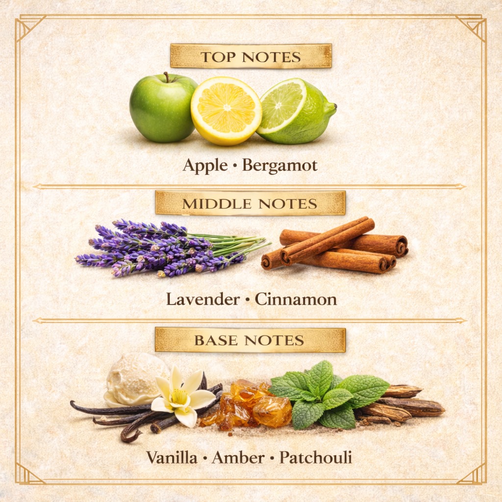 Base Notes: Vanilla, Amber, Patchouli 🍦🔥🍃