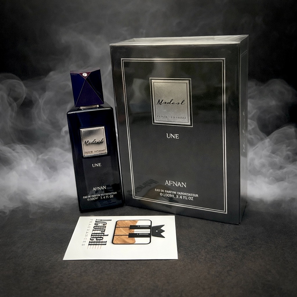 Modest Une pour Homme by Afnan is a fresh aromatic-woody fragrance that blends spicy brightness with smooth warmth and clean masculinity. It opens with an energetic mix of pepper, lavender, mint, and nutmeg, creating a crisp, slightly spicy introduction with aromatic lift. The heart introduces a refreshing burst of citruses balanced by warm amber and cool eucalyptus, adding depth and a subtly invigorating character. In the dry down, musk provides soft sensuality, while vetiver and cedar create a clean, woody foundation that lingers with understated confidence. Versatile and modern, Modest Pour Homme Une is well suited for daily wear, office settings, and year-round use.