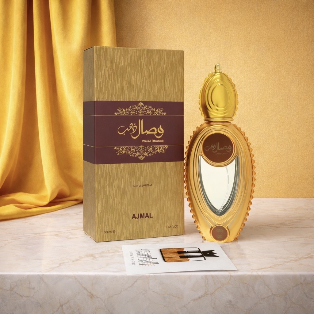 Wisal Dhahab by Ajmal is a floral woody fragrance that blends juicy fruits with elegant florals and a smooth woody base. It opens with a vibrant medley of pear, apple, peach, grapefruit, and mandarin orange, delivering a fresh and slightly sweet introduction. The heart blossoms into rose, orchid, jasmine, and geranium, adding floral richness and refined depth. In the dry down, sandalwood provides creamy warmth while musk, cedar, and patchouli create a smooth, earthy foundation that lingers with sophistication. Bright yet balanced, Wisal Dhahab is well suited for daily wear, special occasions, and year-round elegance.