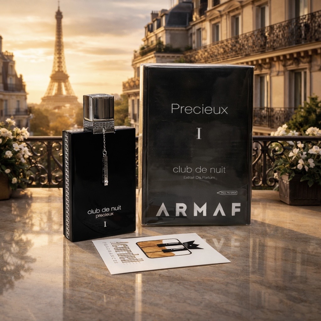 Club de Nuit Precieux I by Armaf is a bold fruity-woody fragrance that blends vibrant citrus with sweet gourmand warmth and deep woody richness. It opens with an energetic mix of pineapple, lemon, bergamot, caramel, pink pepper, pear, and black pepper, creating a fresh yet slightly sweet and spicy introduction. The heart unfolds into oak moss and white wood, complemented by jasmine, lily of the valley, and anise, adding green depth and subtle floral nuance. In the dry down, ambroxan and white musk provide projection and smoothness, while patchouli, cedar, amber, leather, and vanilla create a warm, textured, and long-lasting foundation. Dynamic and confident, Club de Nuit Precieux I is ideal for evenings, special occasions, and year-round wear.