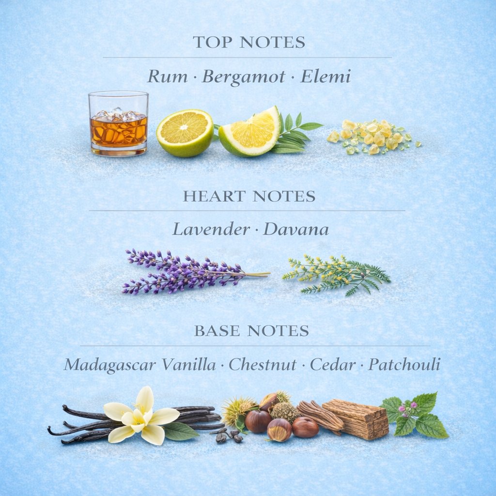 As it dries down, olibanum introduces a subtle smoky-resinous warmth, beautifully balanced by earthy patchouli. The result is a scent that feels fresh yet grounded — smooth, modern, and quietly powerful. Perfect for daily wear, warm weather, and versatile occasions.