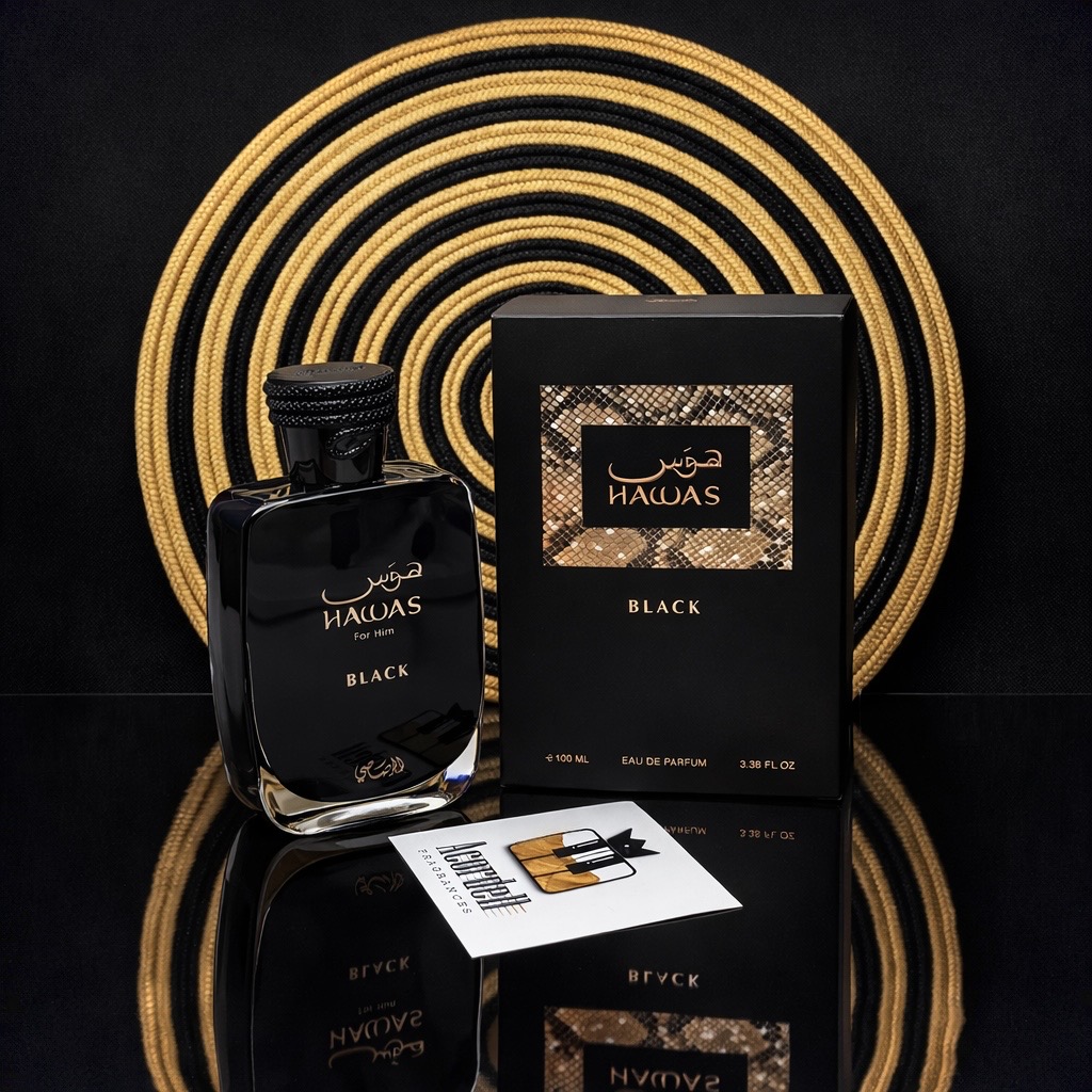Hawas Black by Rasasi is a bold fruity-woody fragrance that blends vibrant citrus with earthy woods and warm amber depth. It opens with bergamot, pineapple, and grapefruit, creating a bright and juicy introduction with subtle tang. The heart unfolds into patchouli and cedarwood enhanced by jasmine, adding woody richness balanced by soft floral nuance. In the dry down, oakmoss provides earthy texture, while woody notes and amber create a smooth, warm foundation with lasting character. Strong and versatile, Hawas Black is well suited for evenings and year-round wear.