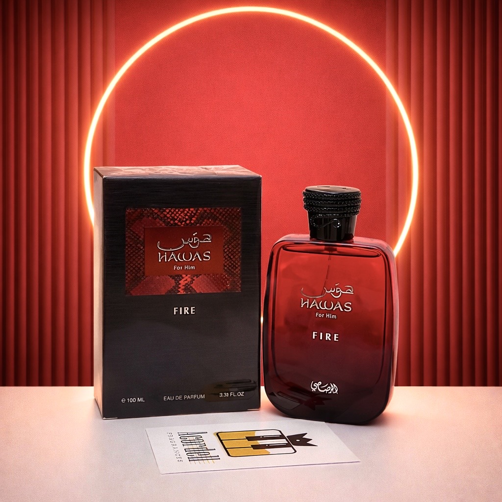 Hawas Fire by Rasasi is a modern aquatic-amber fragrance that blends aromatic freshness with marine depth and warm mineral warmth. It opens with clary sage, delivering a crisp and slightly herbal introduction. The heart unfolds into marine notes layered with Egyptian jasmine, adding aquatic clarity balanced by soft floral elegance. In the dry down, amber provides glowing warmth, while mineral notes and ambergris create a smooth, slightly salty foundation with lasting projection. Clean yet intense, Hawas Fire is well suited for daily wear and warmer seasons.