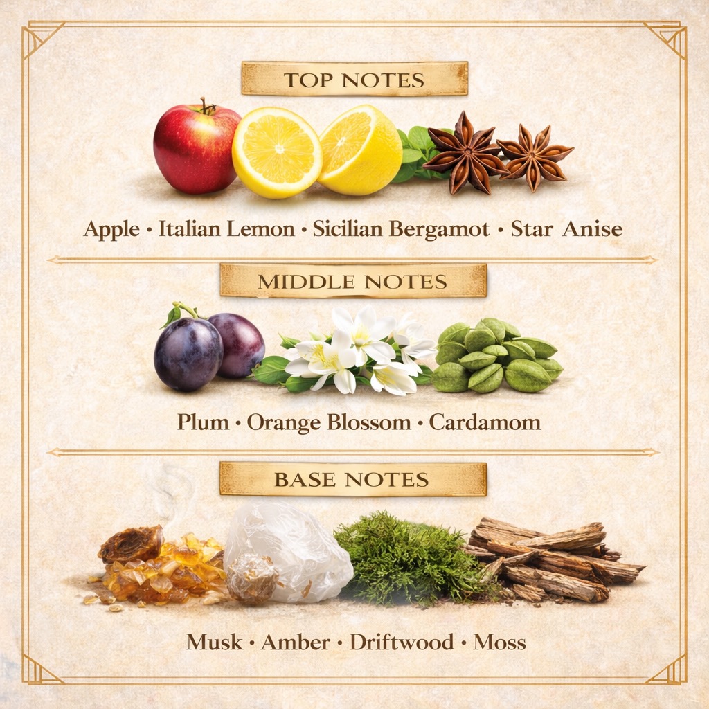 Top Notes: Apple, Italian Lemon, Sicilian Bergamot, Star Anise 🍎🍋🍋⭐