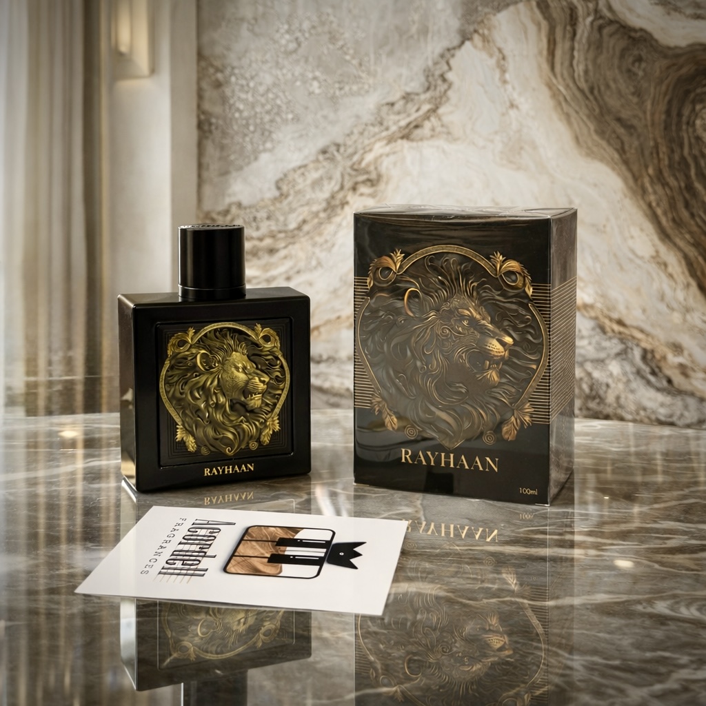 Lion by Rayhaan is a bold aromatic-spicy fragrance that blends fresh fruit with warm spice and smooth woody depth. It opens with lavender and pear layered with mint and bergamot, creating a bright yet slightly sweet introduction. The heart unfolds into cinnamon enhanced by clary sage and cumin, adding warm spice balanced by aromatic nuance. In the dry down, vanilla provides creamy sweetness, while amber, cedar, and patchouli create a rich, woody foundation with lasting character. Confident and expressive, Lion is well suited for evenings and cooler weather.